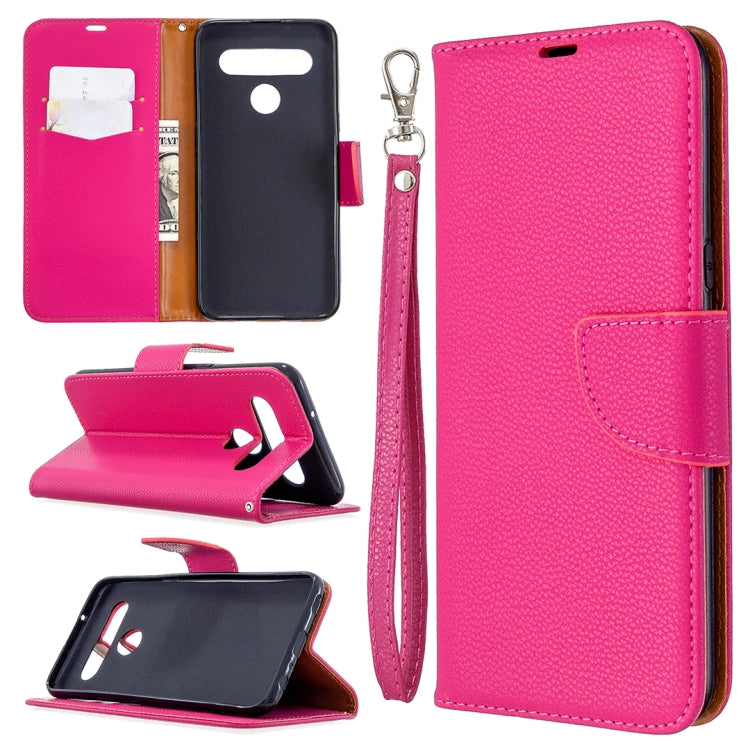 Funda de Cuero para LG K61 Litchi Texture con Soporte, Ranuras y Cordón (Rosa Roja)