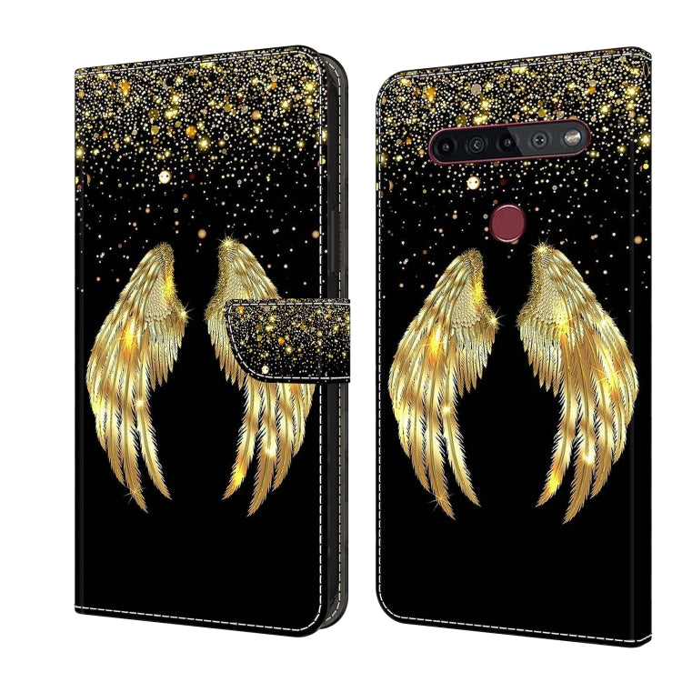 Funda Protectora de Cuero para LG Q92 5G Crystal 3D a Prueba de Golpes (Alas Doradas)