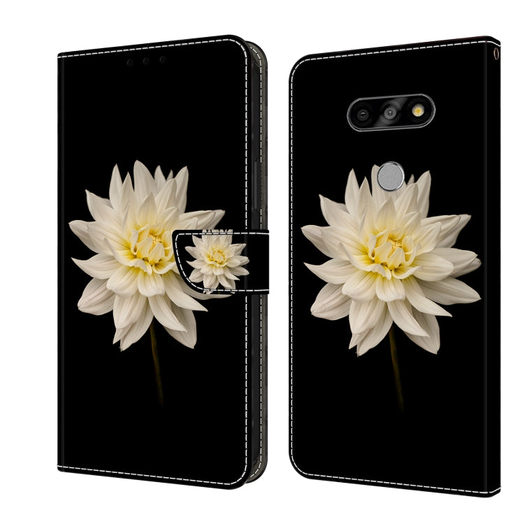 Funda Protectora de Cuero para LG Q92 5G Crystal 3D a Prueba de Golpes (Flor Blanca)