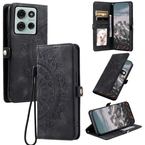 Funda de Piel con Relieve Totem para Motorola Moto G75 5G (Verde Oscuro)