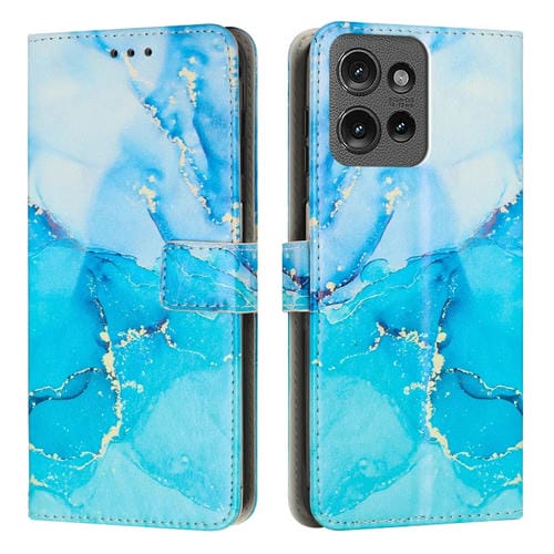 Funda de Cuero con Patrón Mármol para Motorola Edge 2024 5G (Azul y Verde)
