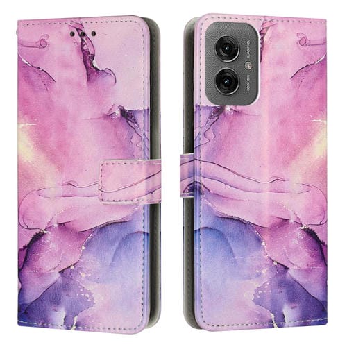 Funda de Cuero con Patrón Mármol para Motorola Edge 2024 5G (Rosa y Morado)