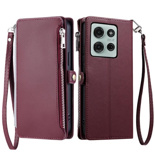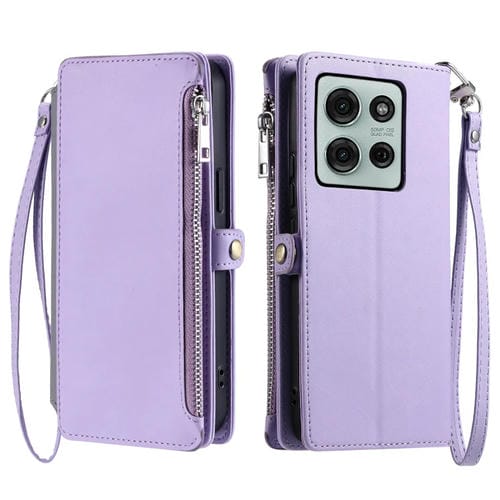 Funda para Motorola Moto G75 5G con Cremallera y Ranura para Tarjetas (Morado)