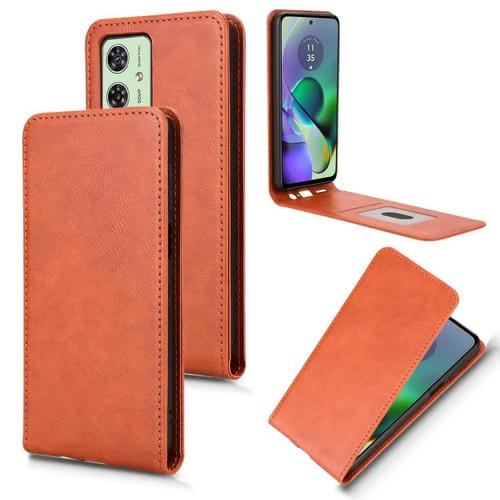 Funda de Cuero con Tapa Vertical Magnética para Motorola Moto G54 5G (Marrón)