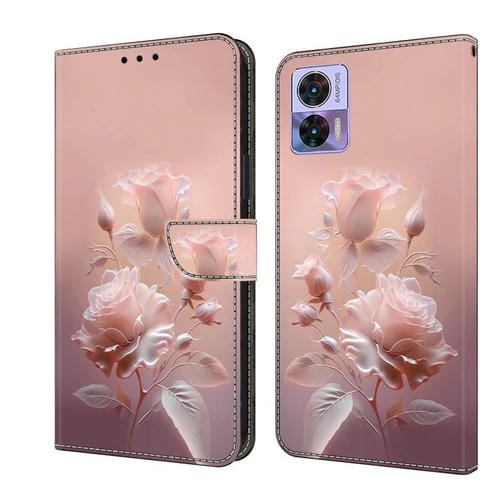 Funda de Cuero Pintada a Mano Motorola Edge 30 Neo con Flores de Cerámica