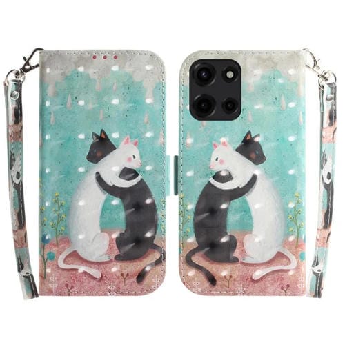 Funda de Cuero con Tapa 3D para Motorola Moto G 5G (2025) (Gato Blanco y Negro)