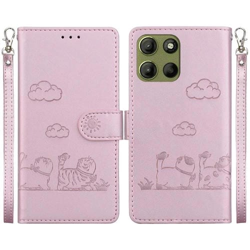 Funda de Cuero Rfid para Motorola Moto G15 con Diseño de Gatos (Oro Rosa)