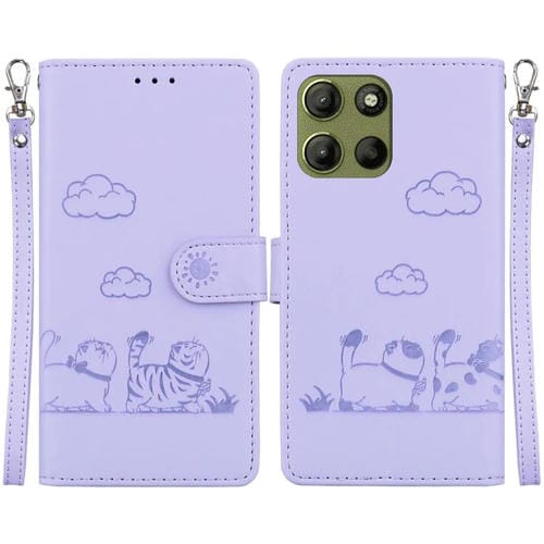 Funda de Cuero Rfid para Motorola Moto G15 con Diseño de Gatos (Morado)