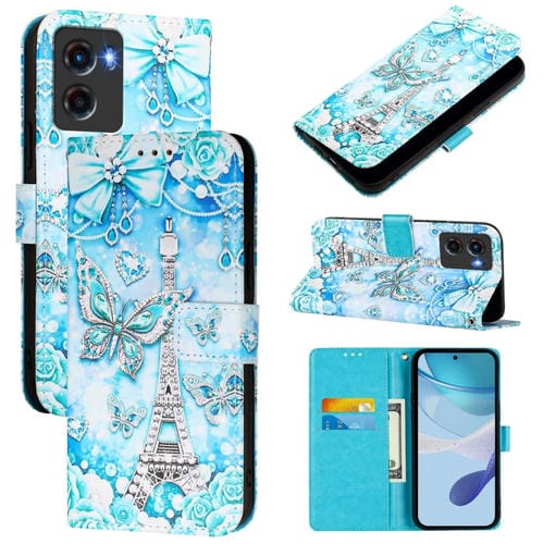 Funda de Cuero Motorola Moto G15 con Dibujo Mariposa en Forma de Torre (Liso)