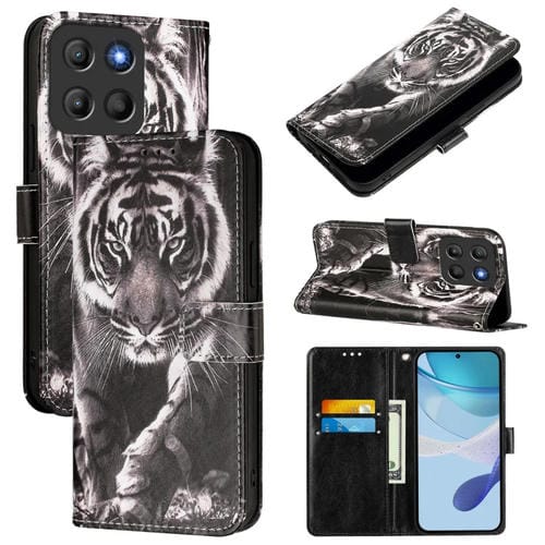 Funda de Cuero para Motorola Moto G15 con Diseño Tigre Blanco y Negro (Liso)
