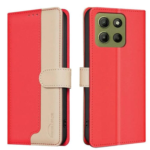 Funda de Cuero Antirrobo con Protección Rfid para Motorola Moto G15 (Rojo)