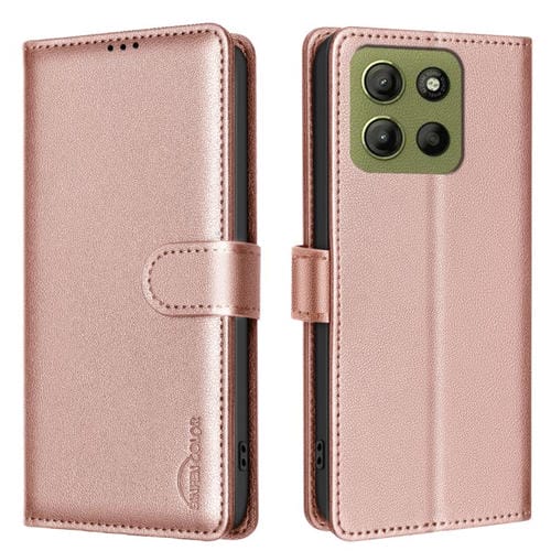 Funda de Cuero Antirrobo RFID con Textura Litchi para Motorola Moto G15 (Dorada)