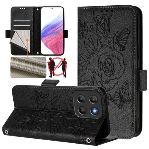 Funda de Cuero Antirrobo RFID con Relieve en Rosa para Motorola Moto G05 (Negra)