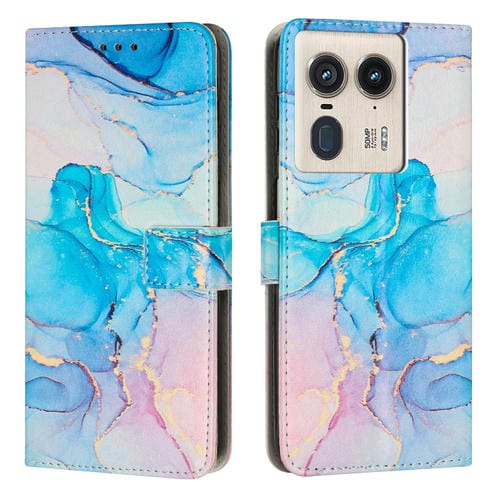 Funda de Cuero con Patrón Mármol para Motorola Edge 40/Edge 2023 (Rosa y Morado)