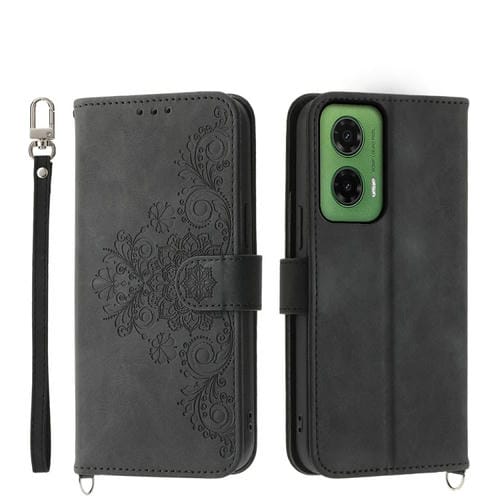 Funda de Cuero con Relieve de Flores para Motorola Moto G75 5G (Negra)