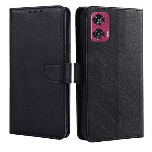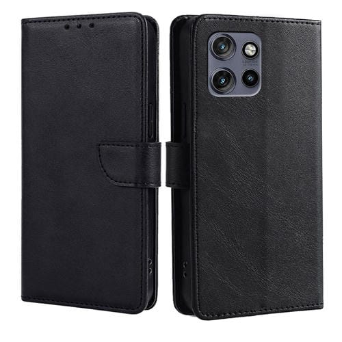 Funda de Cuero con Tapa y Hebilla para Motorola Edge 50 Fusion 5G (Negro)