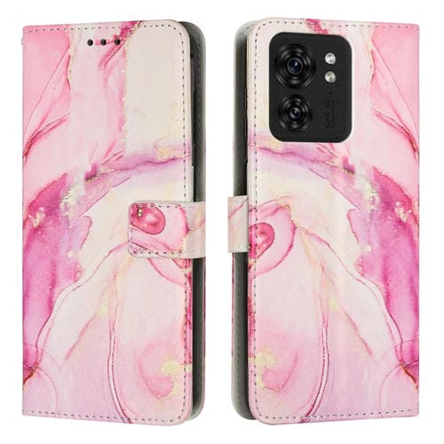 Funda de Cuero con Patrón Mármol para Motorola Edge 40/Edge 2023 (Oro Rosa)