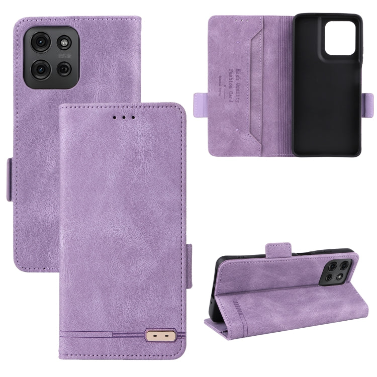 Funda de Cuero con Cierre Magnético para Motorola Moto G75 5G (Morado)