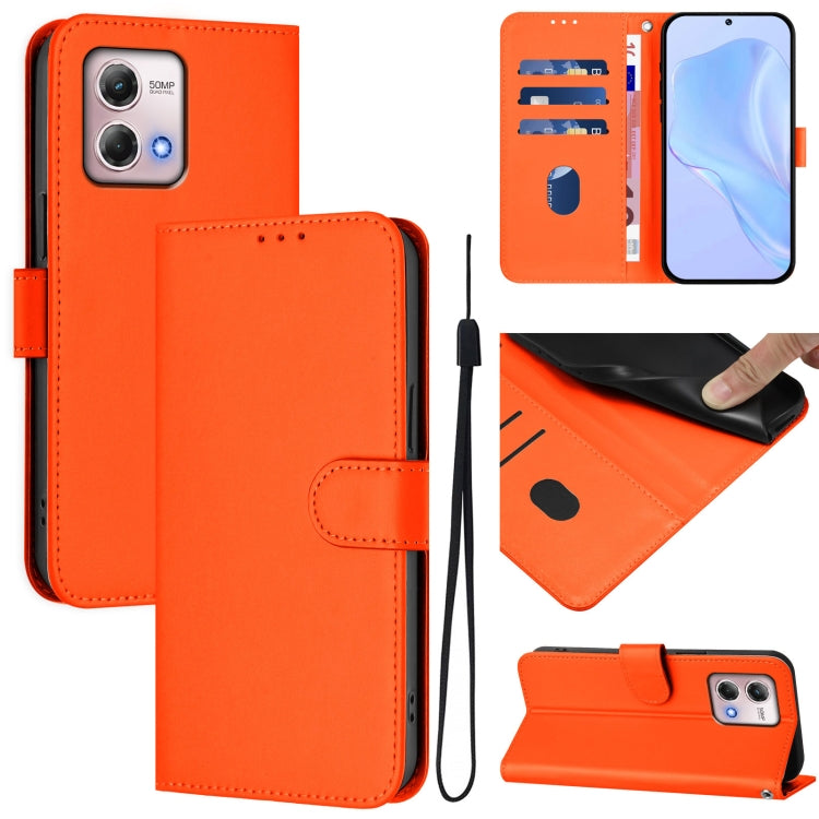 Funda de Piel Sintética con Cordón para Motorola Moto G14 4G (Naranja)
