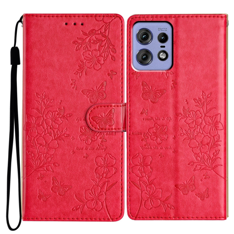 Funda de Cuero para Motorola Edge 50 Pro con Mariposas y Flores (Rojo)