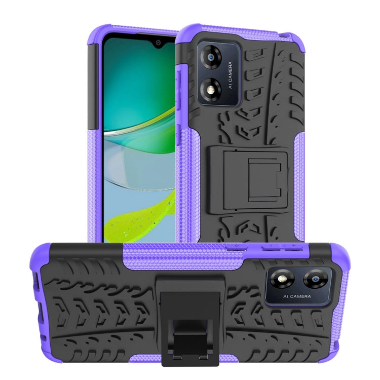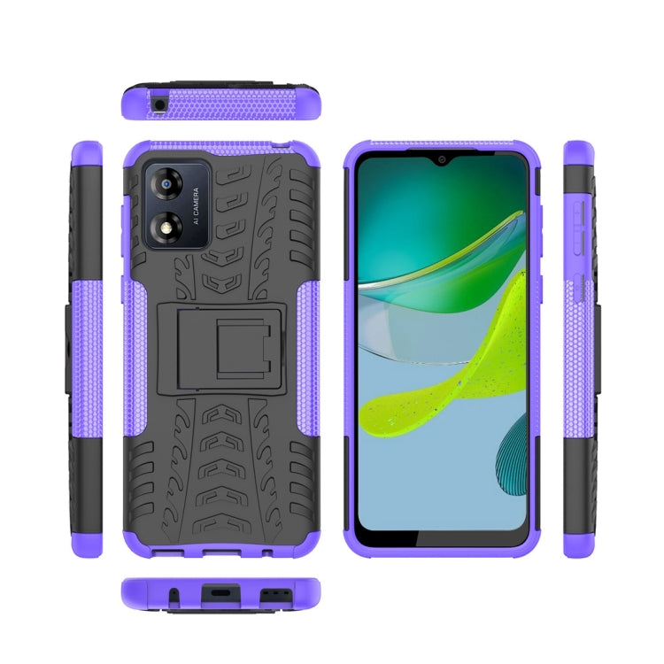 Funda para Motorola Moto E13 TPU + PC con Soporte y Textura Tire (Púrpura)