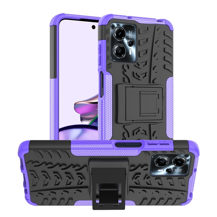 For Motorola Moto G53 Tire Texture TPU+PC Phone Case with Holder (Purple)