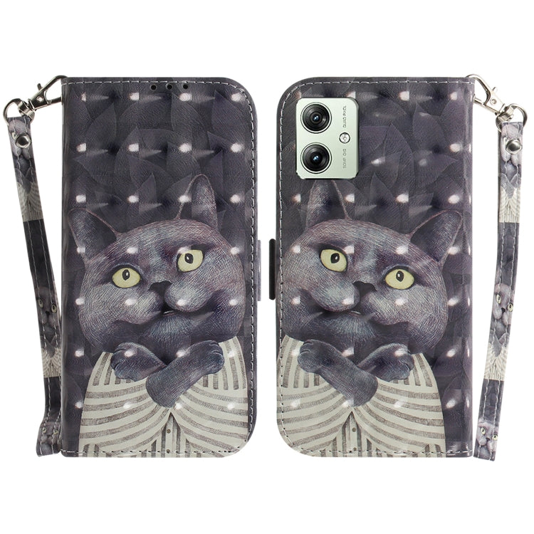 Funda de Cuero para Motorola Moto G54 con Tapa Horizontal y Diseño 3D (Hug Cat)