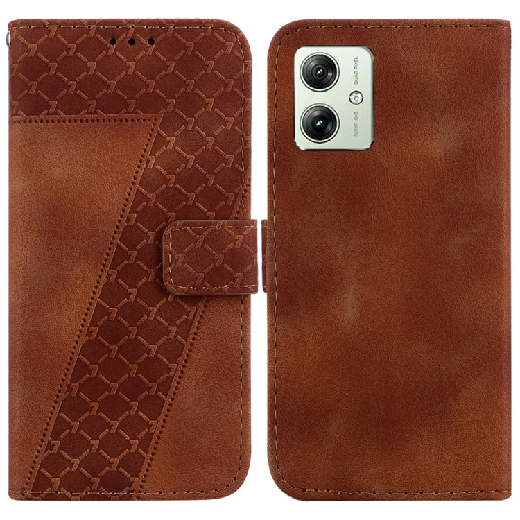 Funda de Cuero para Motorola Moto G54 con Relieve en Forma de 7 (Marrón)