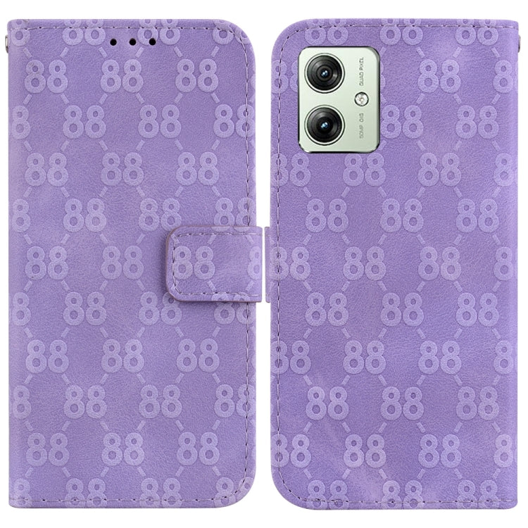 Funda para Motorola Moto G54 de Cuero con Relieve en Forma de 8 Dobles (Púrpura)
