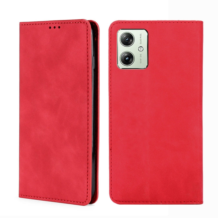Funda de Cuero Magnética para Motorola Moto G54 5G Versión UE Skin Feel (Rojo)