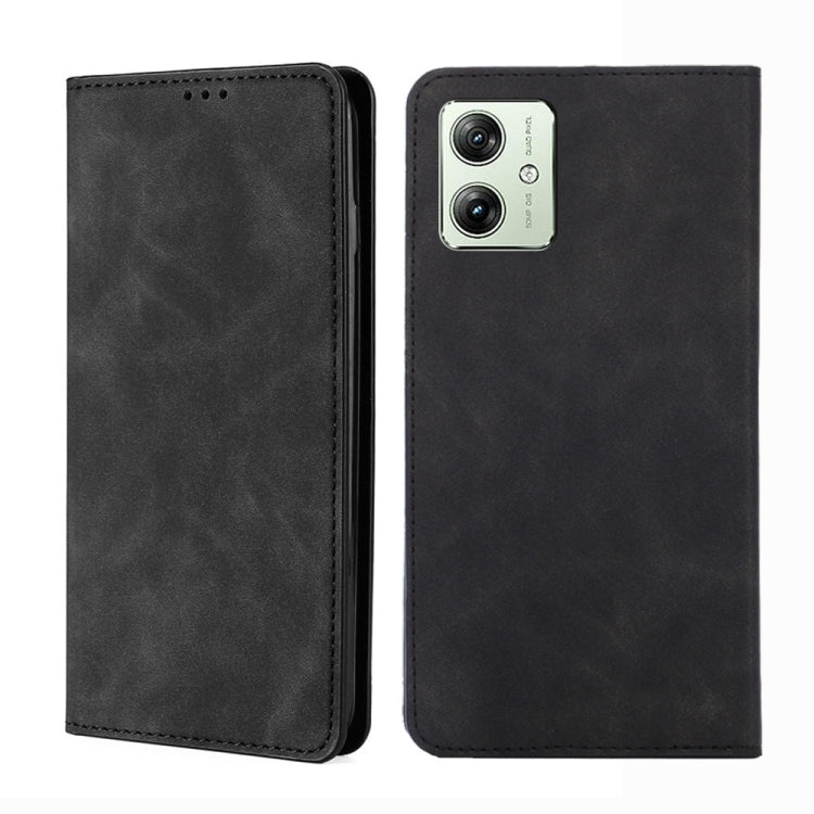 Funda de Cuero Magnética para Motorola Moto G54 5G Versión UE Skin Feel (Negro)