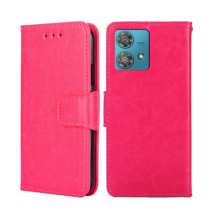 Funda de Cuero para Motorola Edge 40 Neo 5G con Textura de Cristal (Rojo Rosa)
