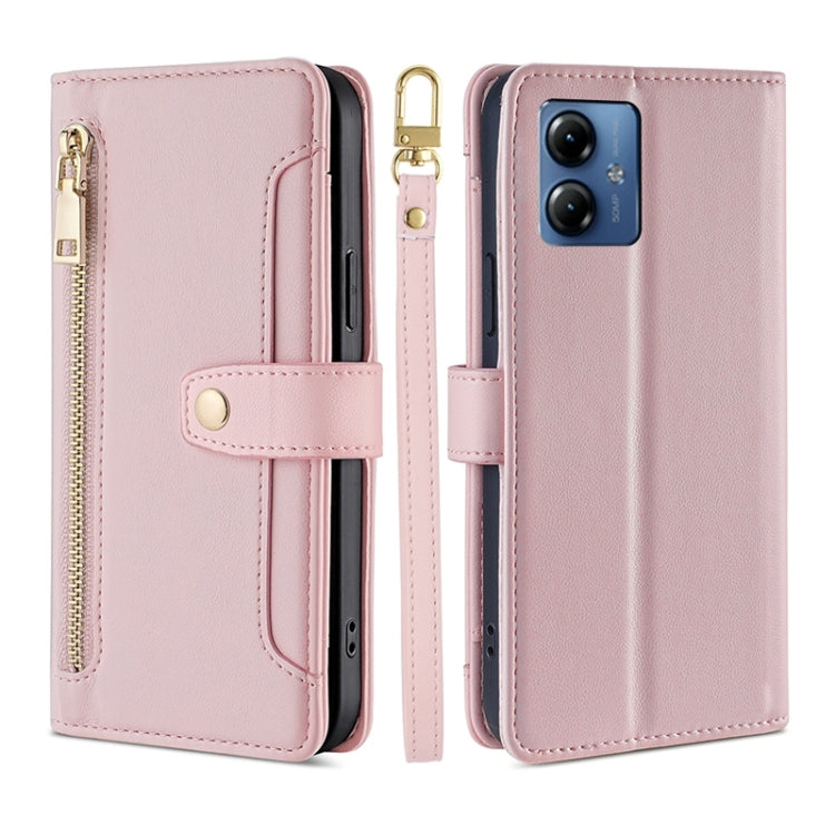 Funda de Cuero para Motorola Moto G14 4G Lite con Billetera y Cremallera (Rosa)