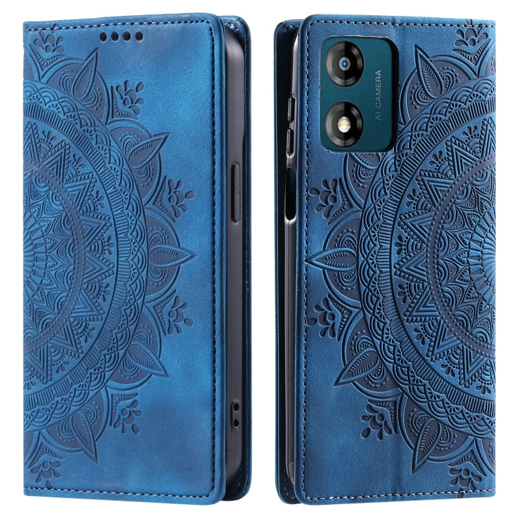 Funda de Cuero Magnética en Relieve para Motorola Moto E13 Totem (Azul)