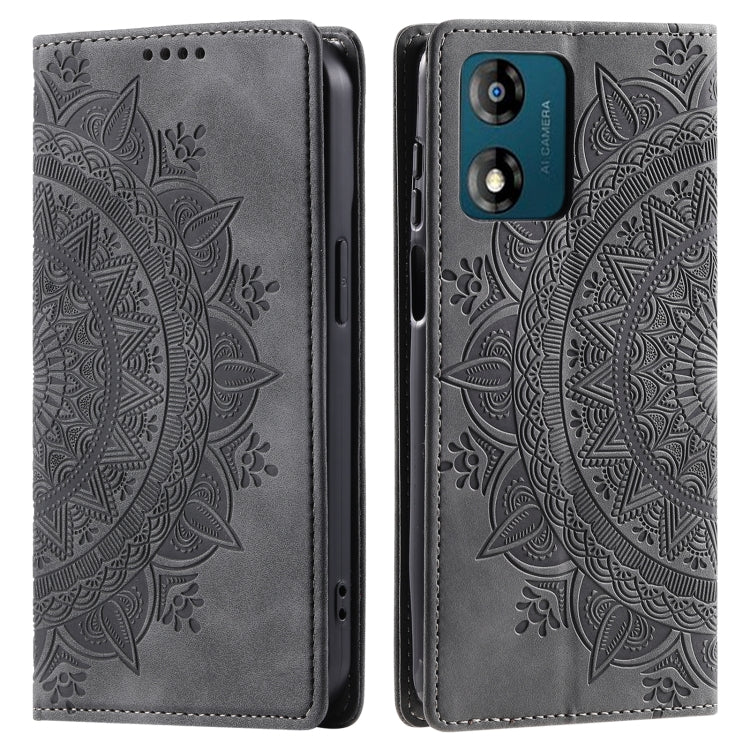 Funda de Cuero Magnética en Relieve para Motorola Moto E13 Totem (Gris)