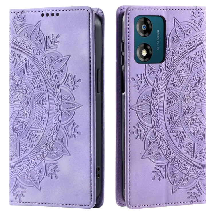 Funda de Cuero Magnética en Relieve para Motorola Moto E13 Totem (Púrpura)