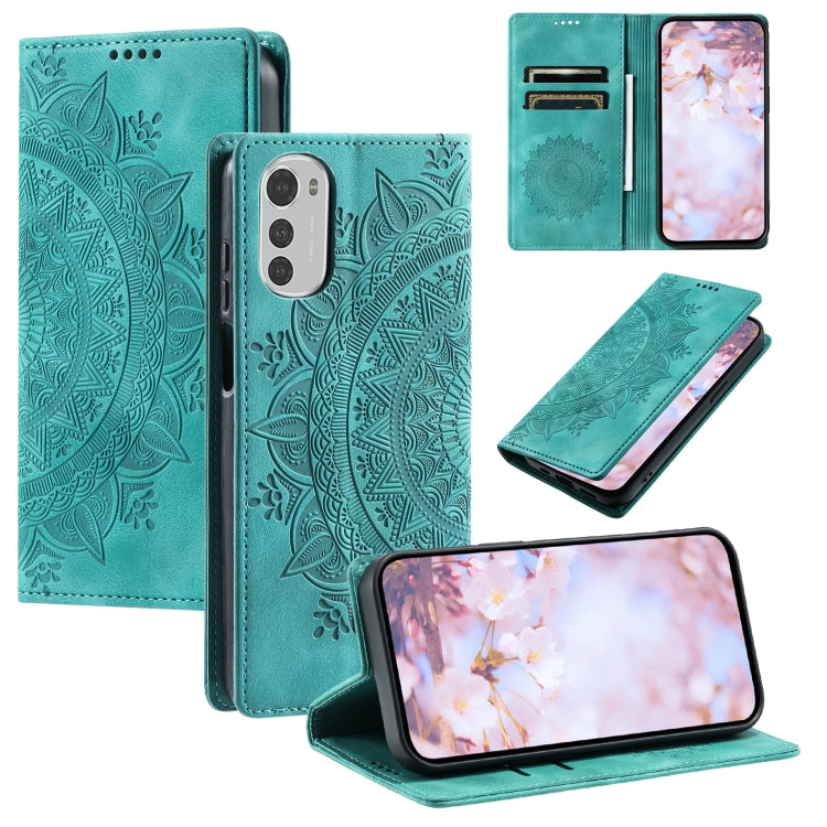 Funda de Cuero Magnética en Relieve para Motorola Moto E32 Totem (Verde)