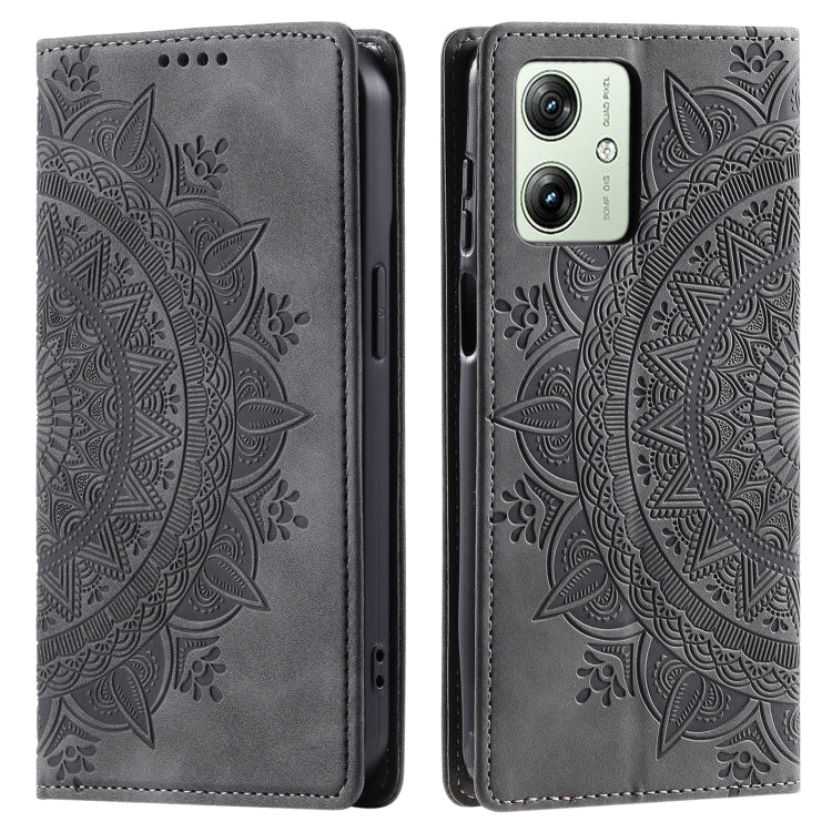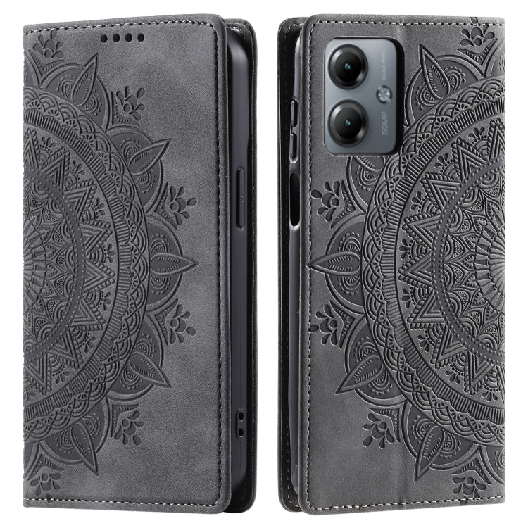 Funda de Cuero Magnética en Relieve para Motorola Moto G14 Totem (Gris)