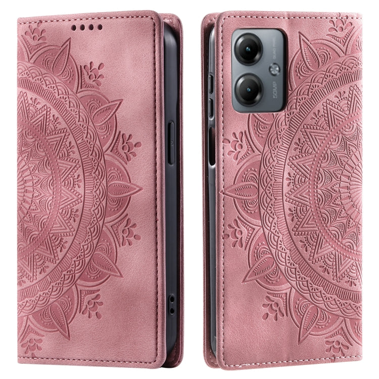 Funda de Cuero Magnética Totem para Motorola Moto G14 con Relieve (Oro Rosa)