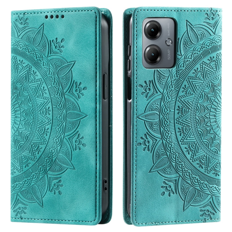 Funda de Cuero Magnética Totem para Motorola Moto G14 en Relieve (Verde)