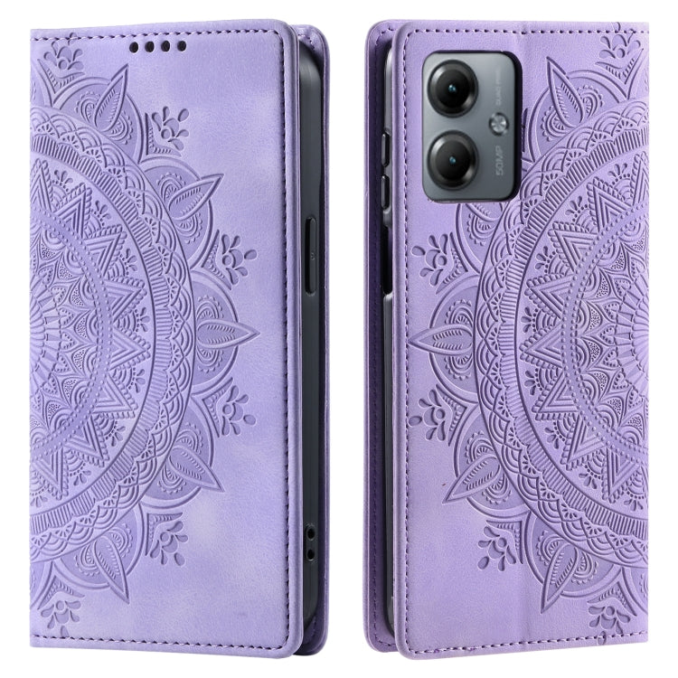 Funda de Cuero Magnética Totem para Motorola Moto G14 en Relieve (Púrpura)