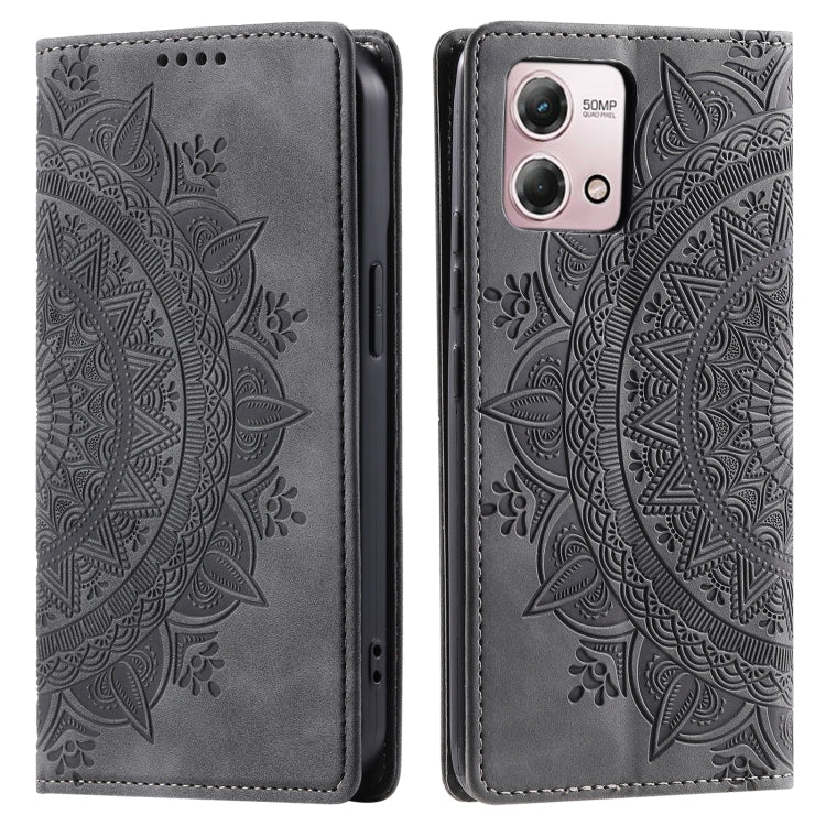 Funda de Cuero Magnética en Relieve para Motorola Moto G84 Totem (Gris)