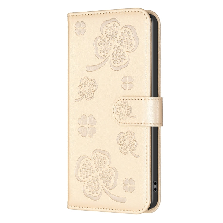 Funda de Cuero para Motorola Edge 40 5G con Relieve de Cuatro Hojas (Dorado)