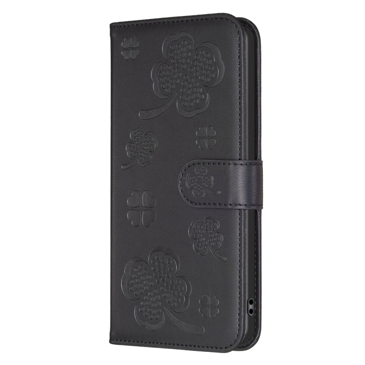 Funda de Cuero para Motorola Moto G71 con Relieve de Cuatro Hojas (Negro)