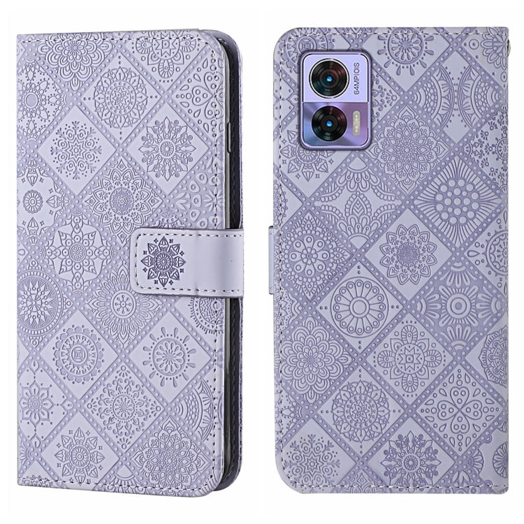 Funda para Motorola Edge 30 Neo de Cuero con Patrón en Relieve Étnico (Púrpura)