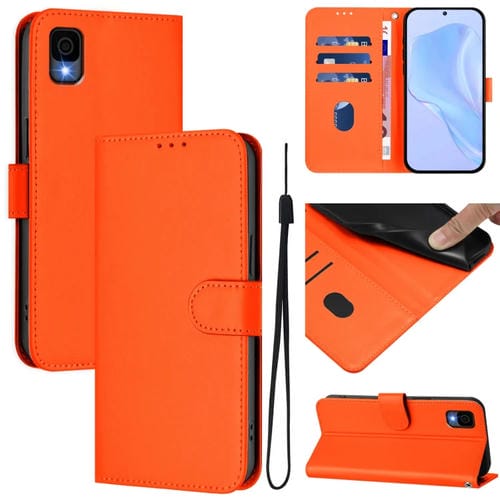 Funda de piel con cordón para teléfono TCL 50 Le con acabado liso (Naranja)