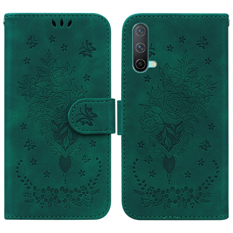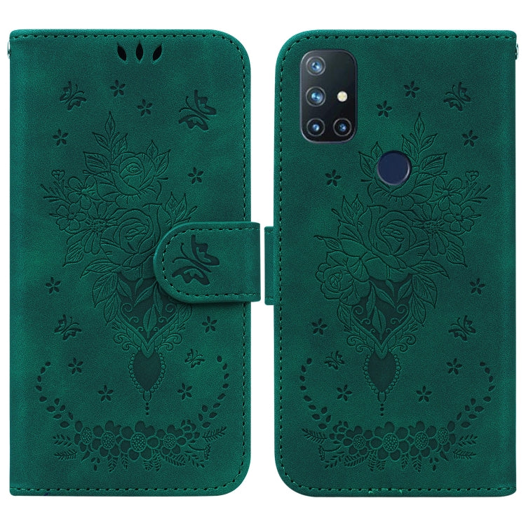 Funda para OnePlus Nord Ce 5G Butterfly Rose en Relieve de Cuero (Verde)
