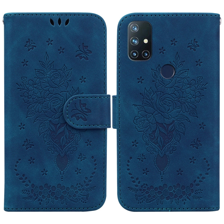 Funda para OnePlus N10 5G Butterfly Rose Foothip en Relieve de Cuero (Azul)