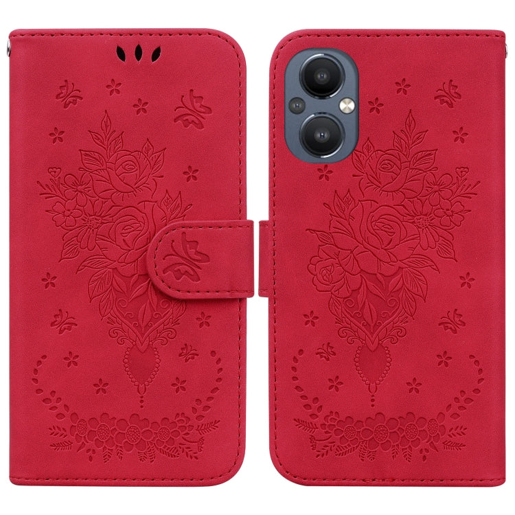 Funda para OnePlus N10 5G Butterfly Rose Foothip en Relieve de Cuero (Rojo)