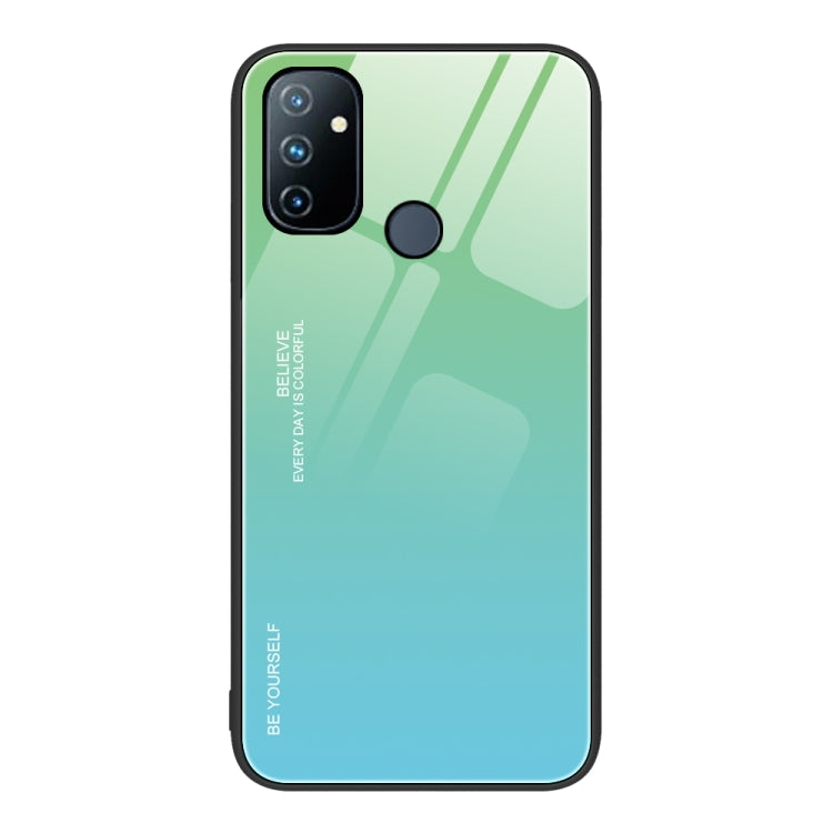 Estuche de Vidrio para OnePlus Nord N100 con Color Degradado (Verde a Cian)